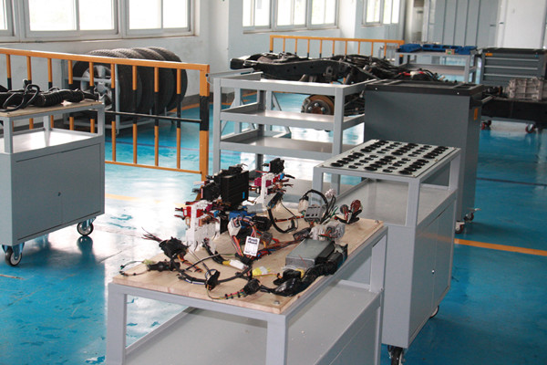 汽车制造实训车间,是面向汽车制造专业方向的员工进行汽车装配基础训练的实训场所。 实训项目: 电器连接器的拆装 管路卡箍的拆装 紧固件的拆装 涂装技能训练 底盘总成件装配技能训练